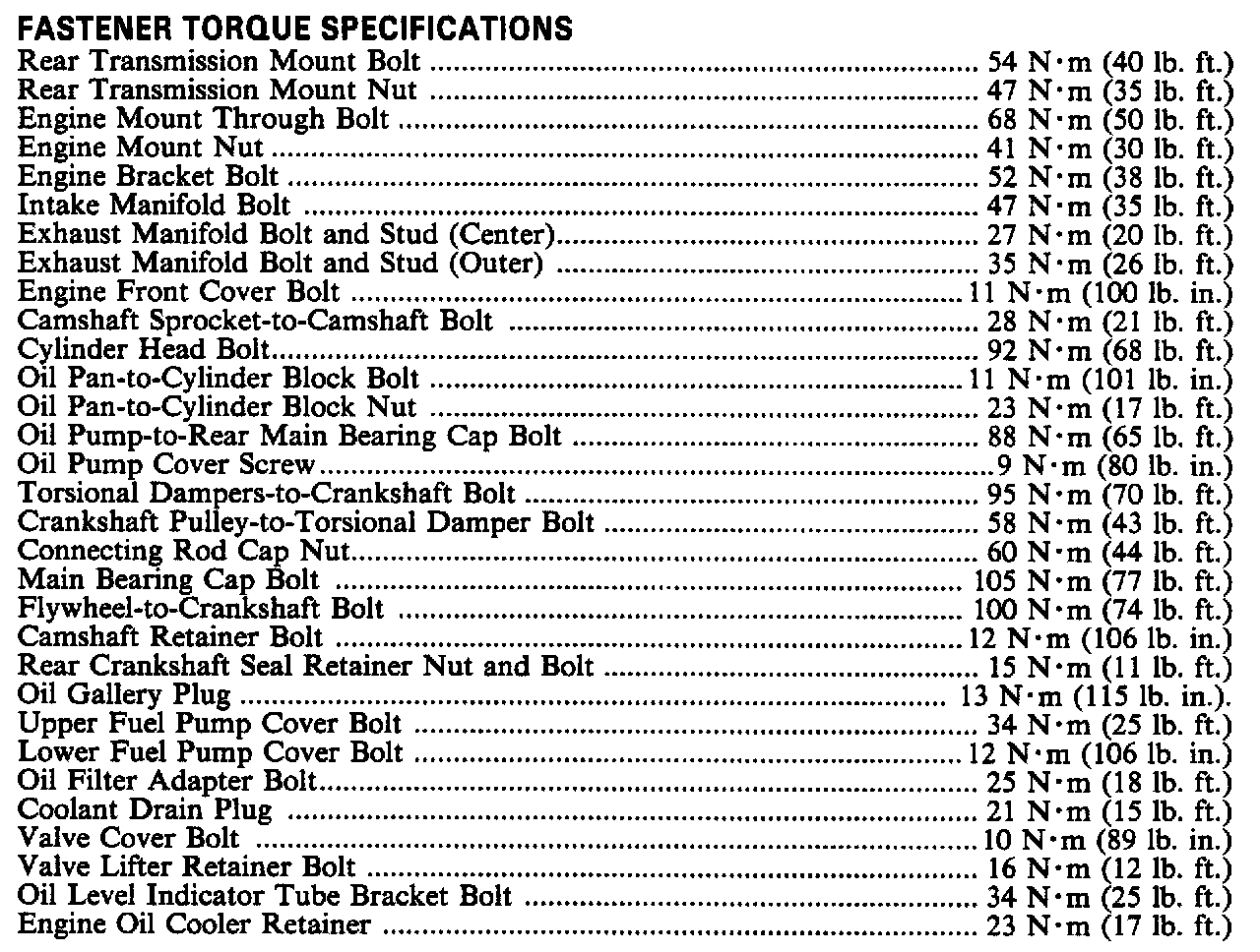 Torque Specifications: