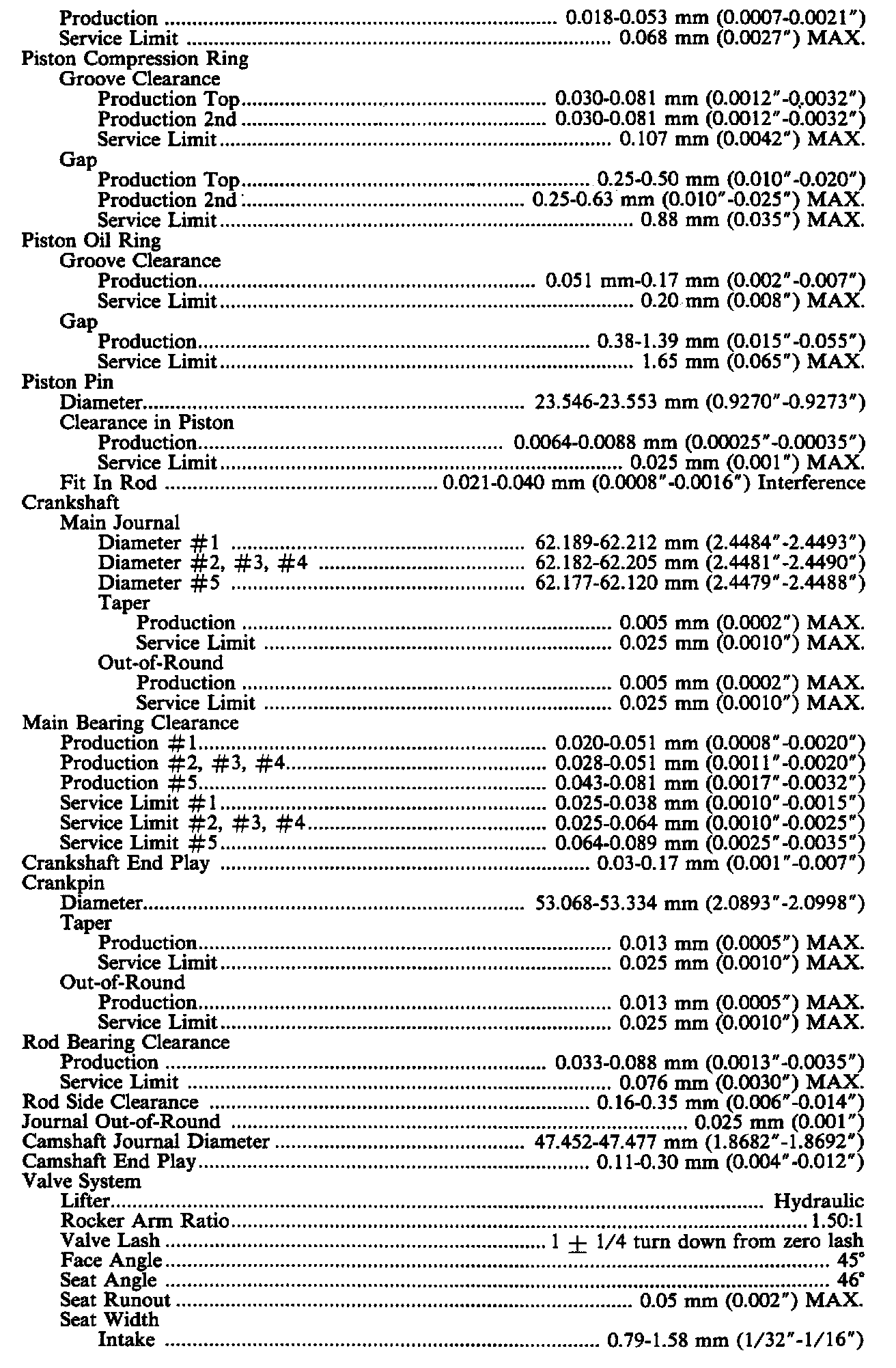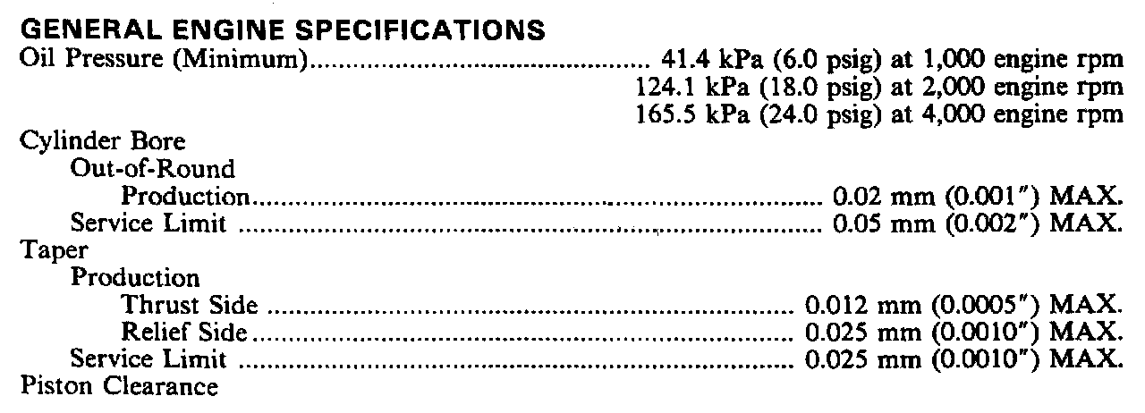 General Engine Specifications: