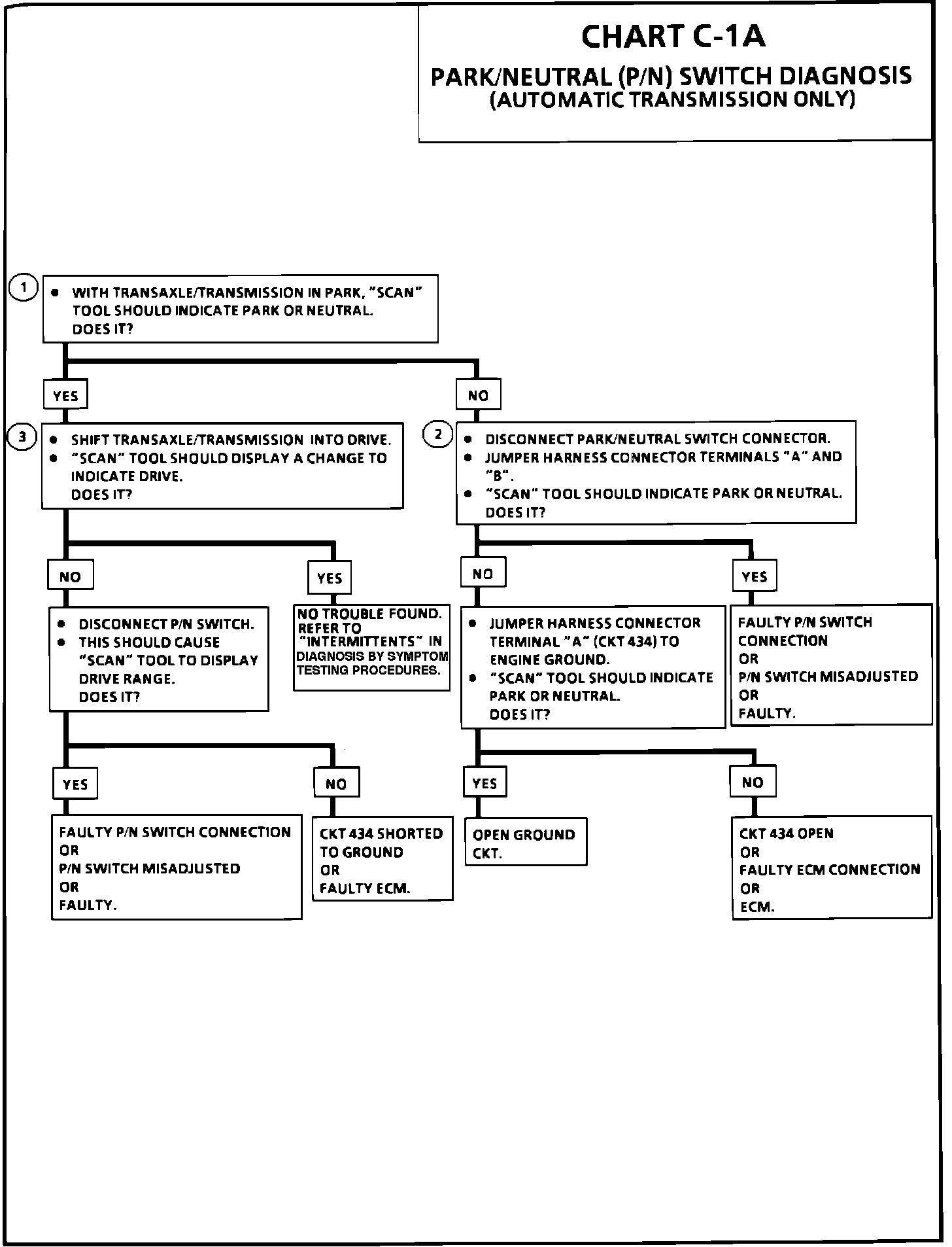 1. Checks for a closed switch to ground in park position. Different makes of "Scan" tools will read P/N differently. Refer to operators manual for type of display used for a specific tool.