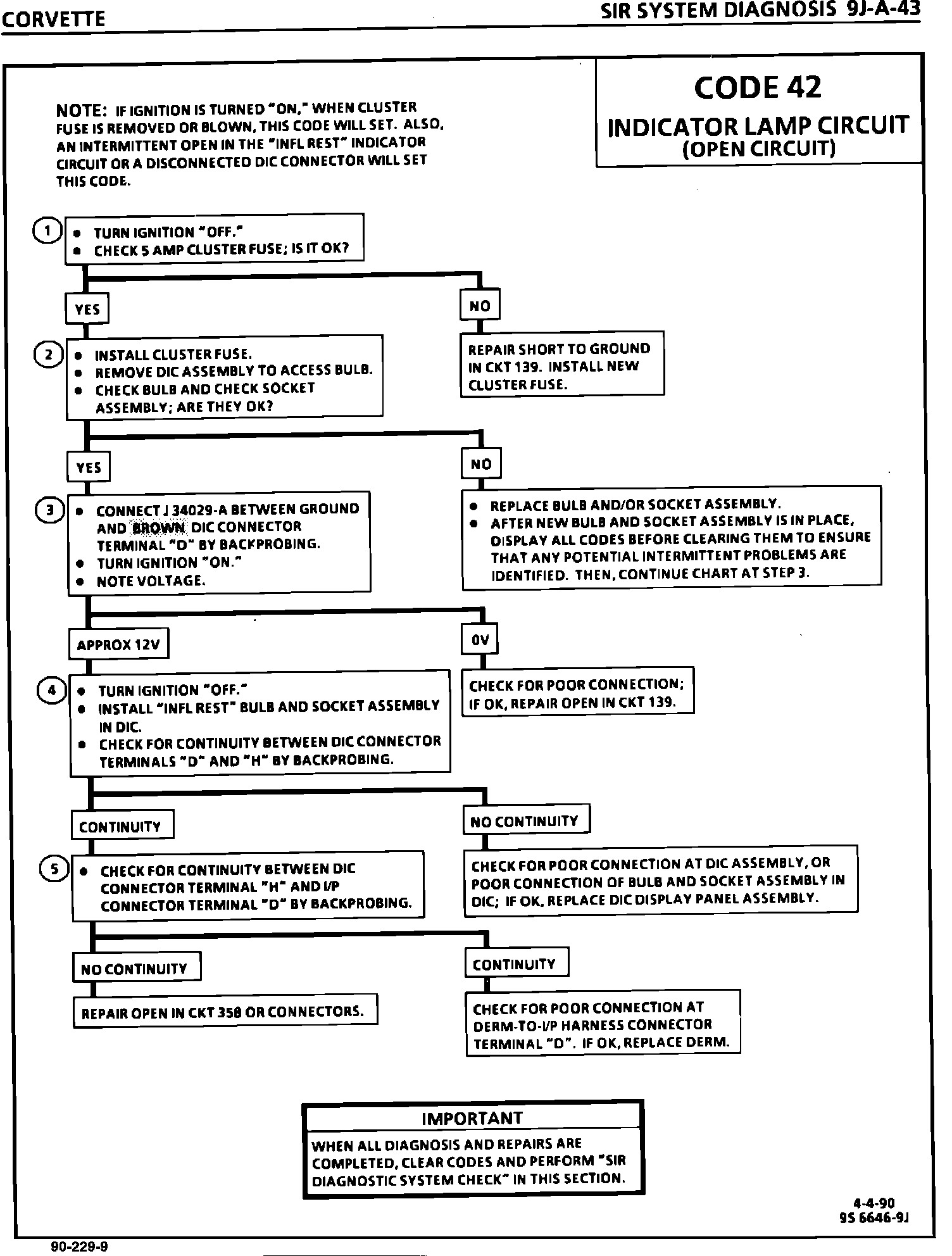 This bulletin serves to revise the Code 42 Chart on page 9J-A-43 in Section 9J-A "Supplemental Inflatable Restraint" in the 1990 "Y" Service Manual.
