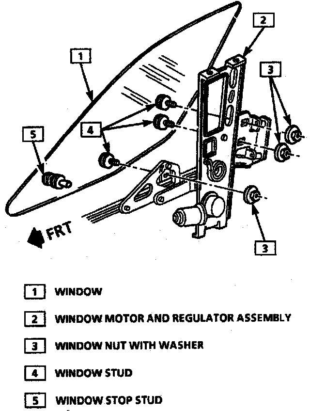 4. Upper and lower window regulator mounting bolts.