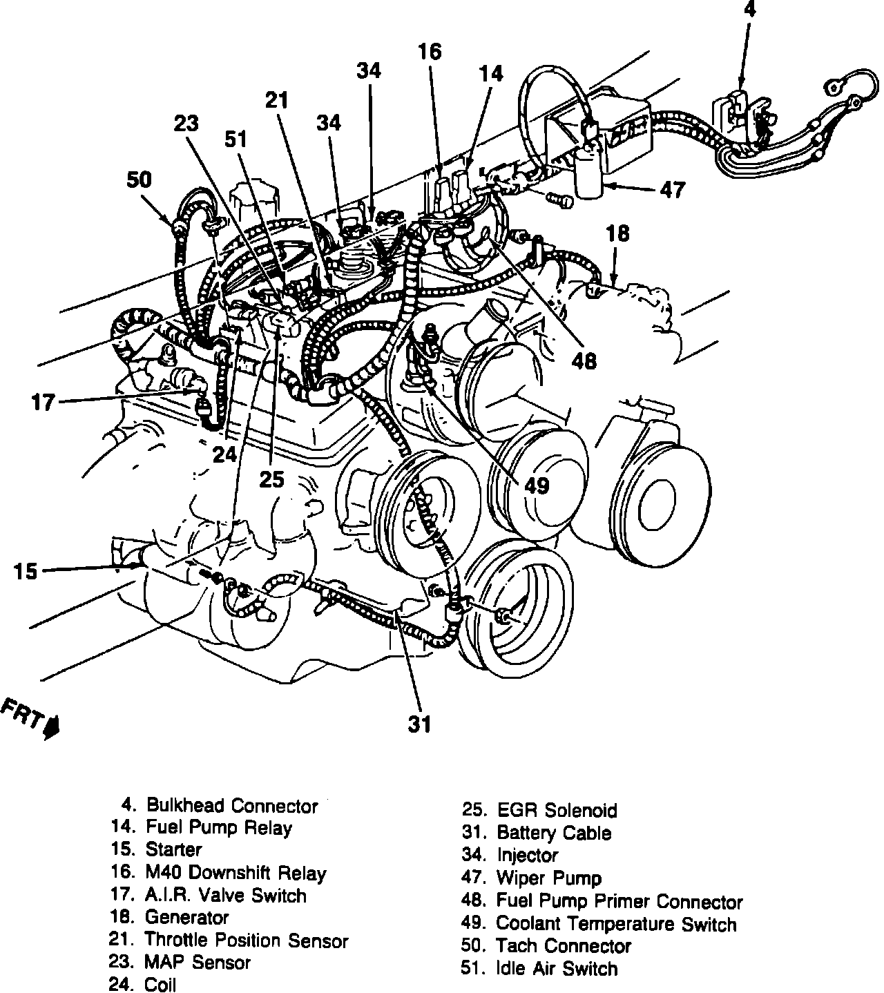 49 = COOLANT TEMPERATURE SWITCH.