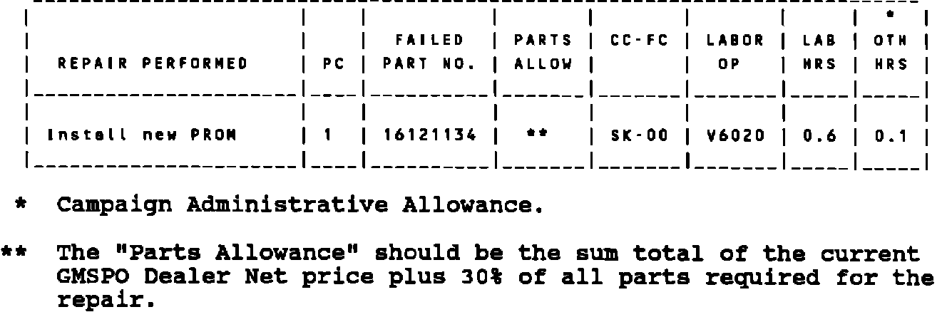1. Referring to the Fuel and Emissions Service Information section of the 1990 Chevrolet Truck R/V, G, and P Model Service Manual (ST 330-90), pages 3-111 to 3-113, remove current PROM and install service PROM.