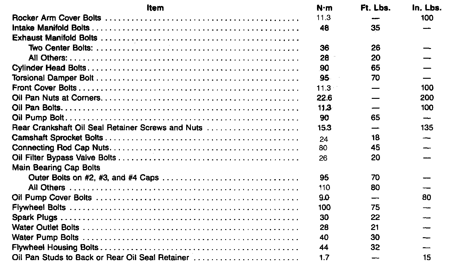 Fastener Tightening Specifications - Engine