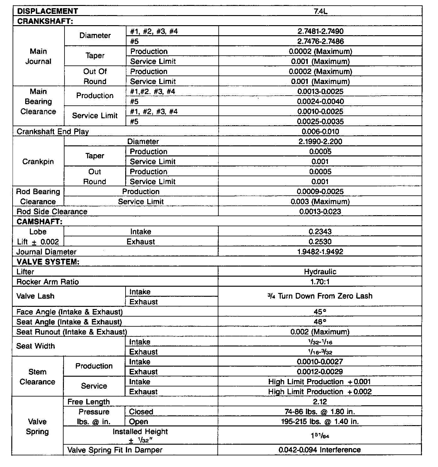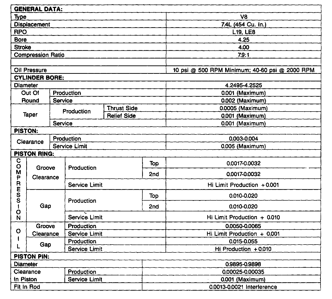 Engine Specifications: