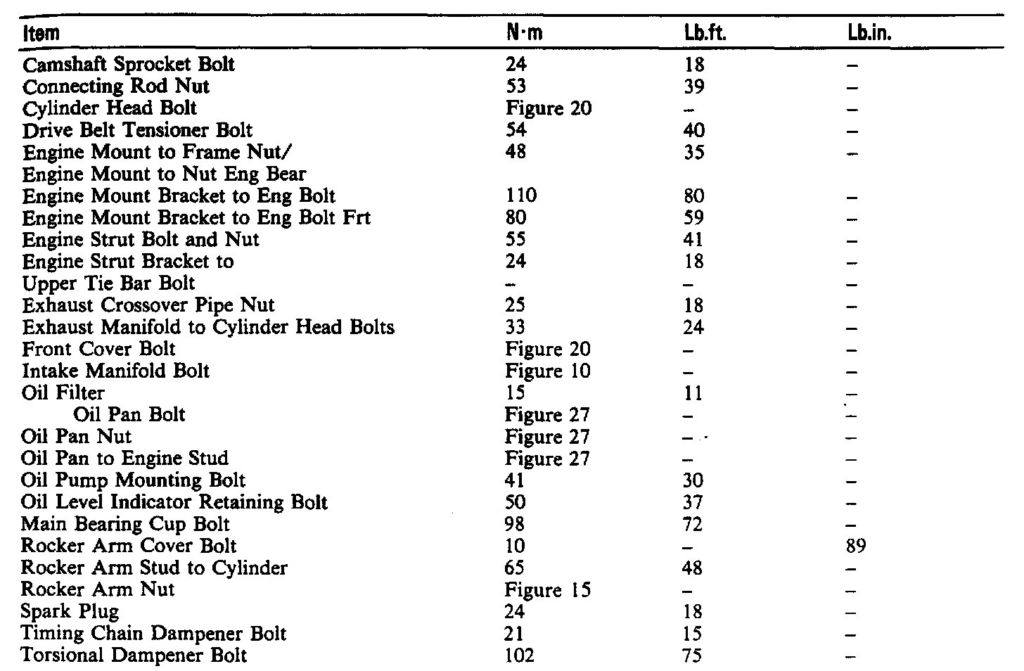 Torque Specifications: