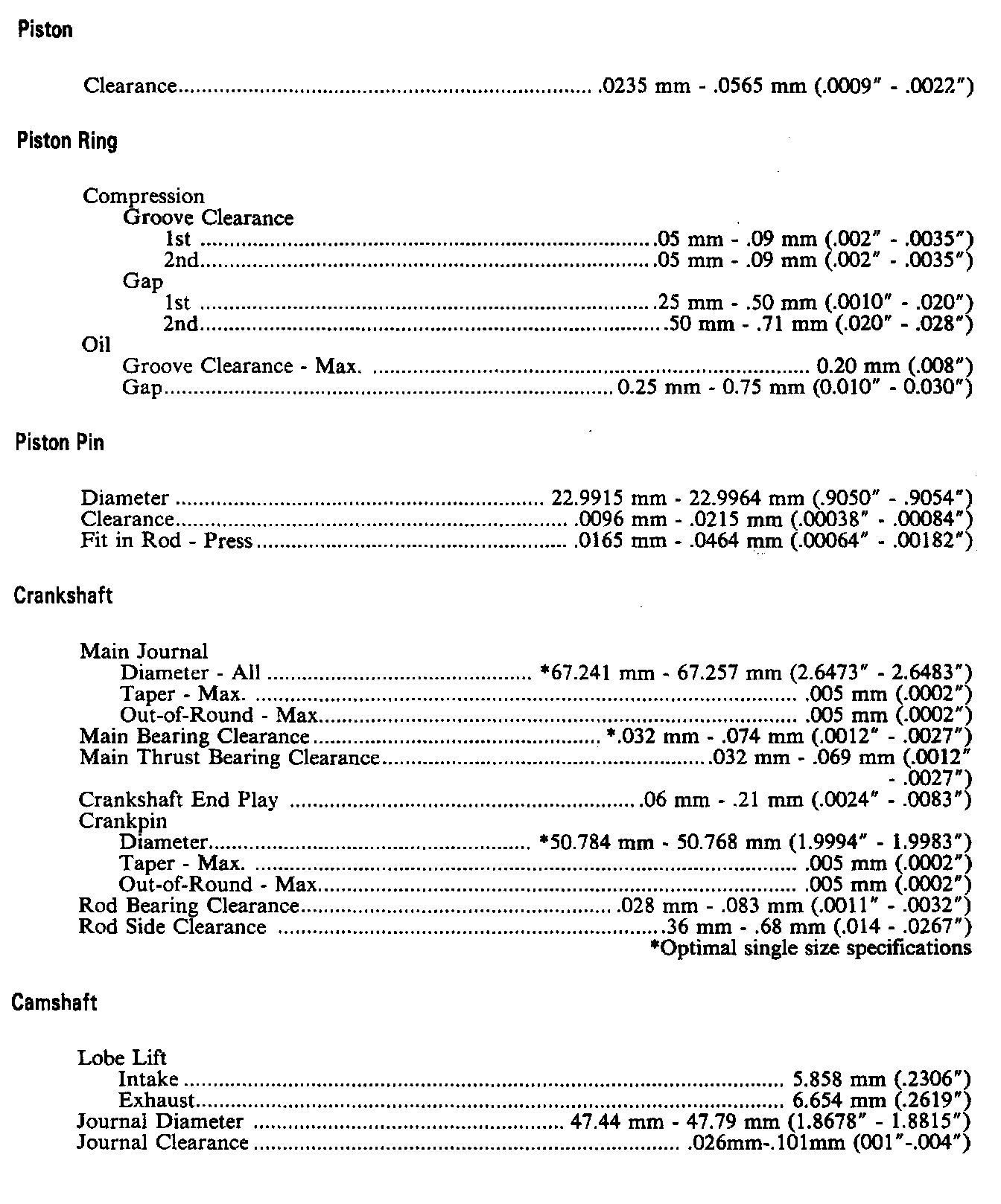 Engine Specifications: