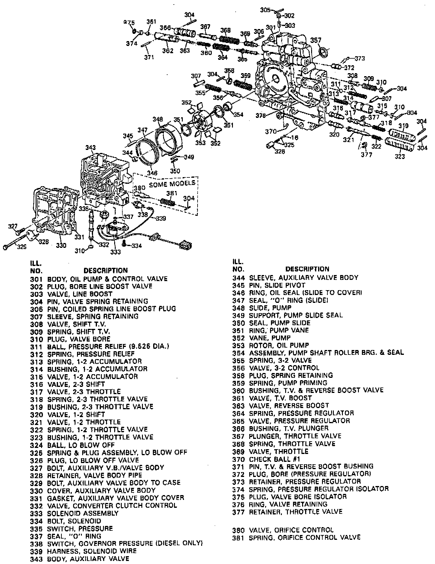 1. Disassemble valve body, noting the following: