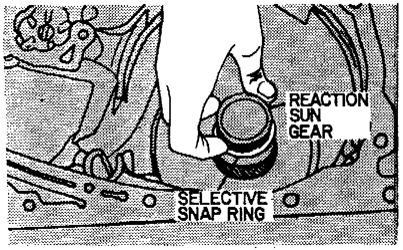 14. Install Low and Reverse housing to case snap ring. The snap ring is .092 inch (2.36 mm) thick.