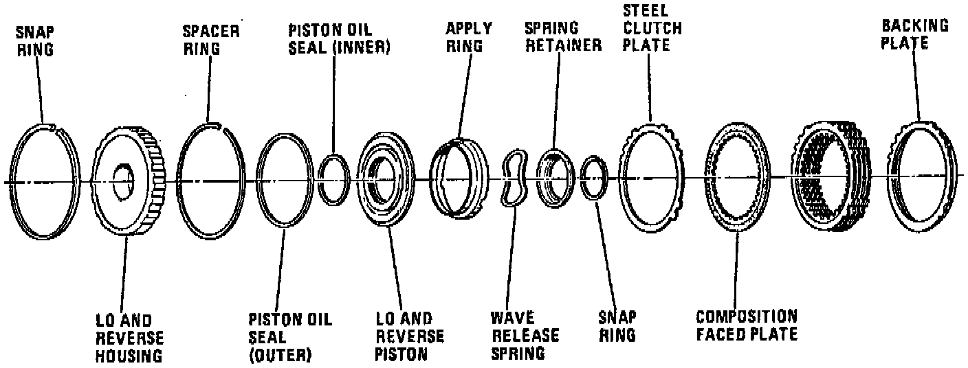 8. Check Low and Reverse clutch housing, piston and apply ring for distortion, cracks, wear or other damage.