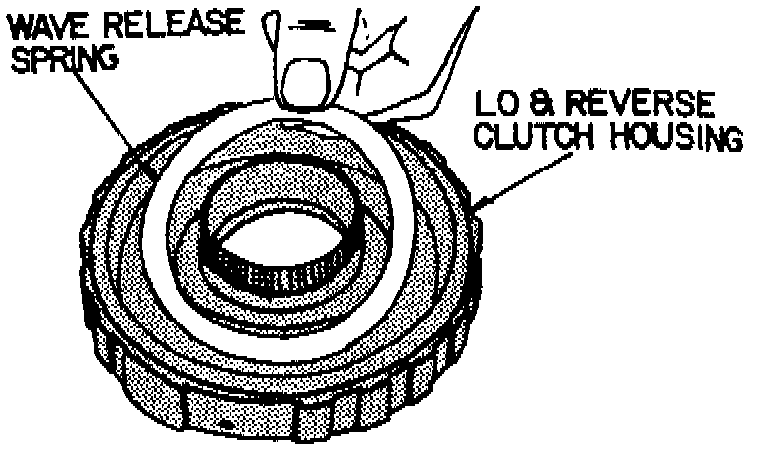 6. Compress Low and Reverse clutch spring retainer and remove snap ring, spring retainer, waved spring and clutch piston.