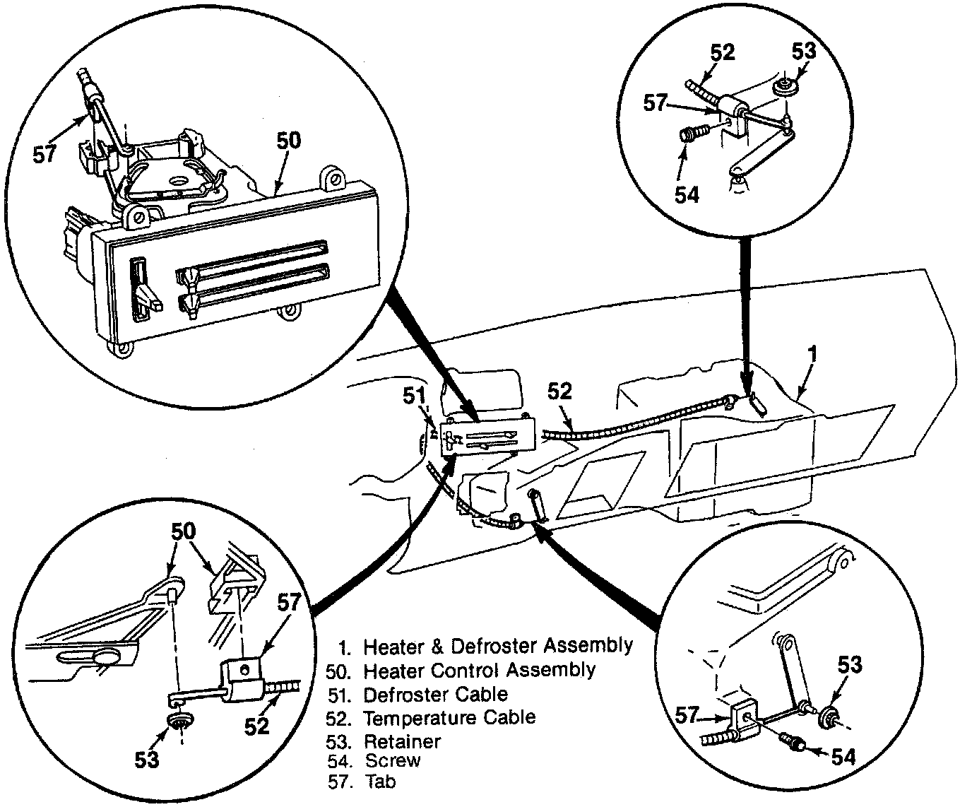 7. Air defroster and temperature cables.