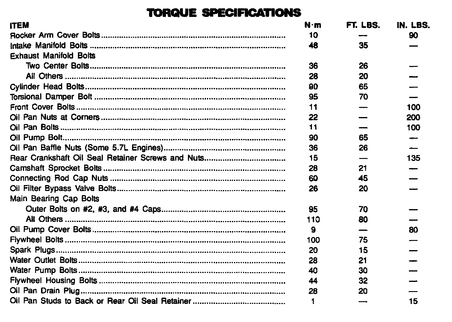 Torque Specifications: