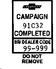 Each vehicle corrected in accordance with the instructions outlined in this Product Campaign Bulletin will require a "Campaign Identification Label." Each label provides a space to include the campaign number and the five (5) digit dealer code of the dealer performing the campaign service. This information may be inserted with a typewriter or a ball point pen.