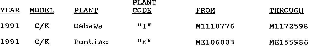 Involved are certain (86 total vehicles) 1991 C/K trucks with 6.2L diesel engines built within the VIN breakpoints.