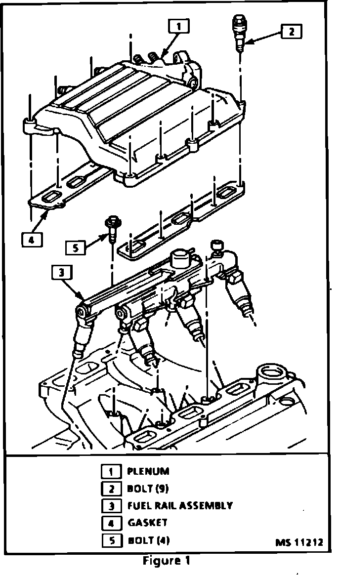 This bulletin updates the intake plenum bolt torque specification for the 1991 3.1L (VIN T) engines used in front wheel drive applications. The correct intake plenum bolt torque is 10.0 Nm (88 lb.in.). The intake plenum is shown in Figure 1.