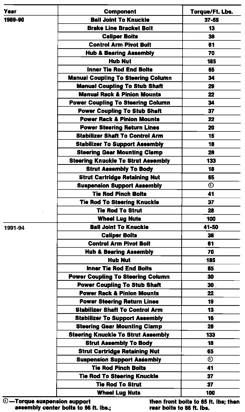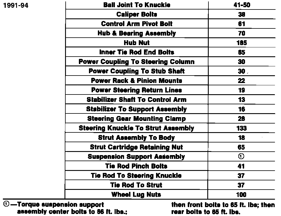 Tightening Specifications: