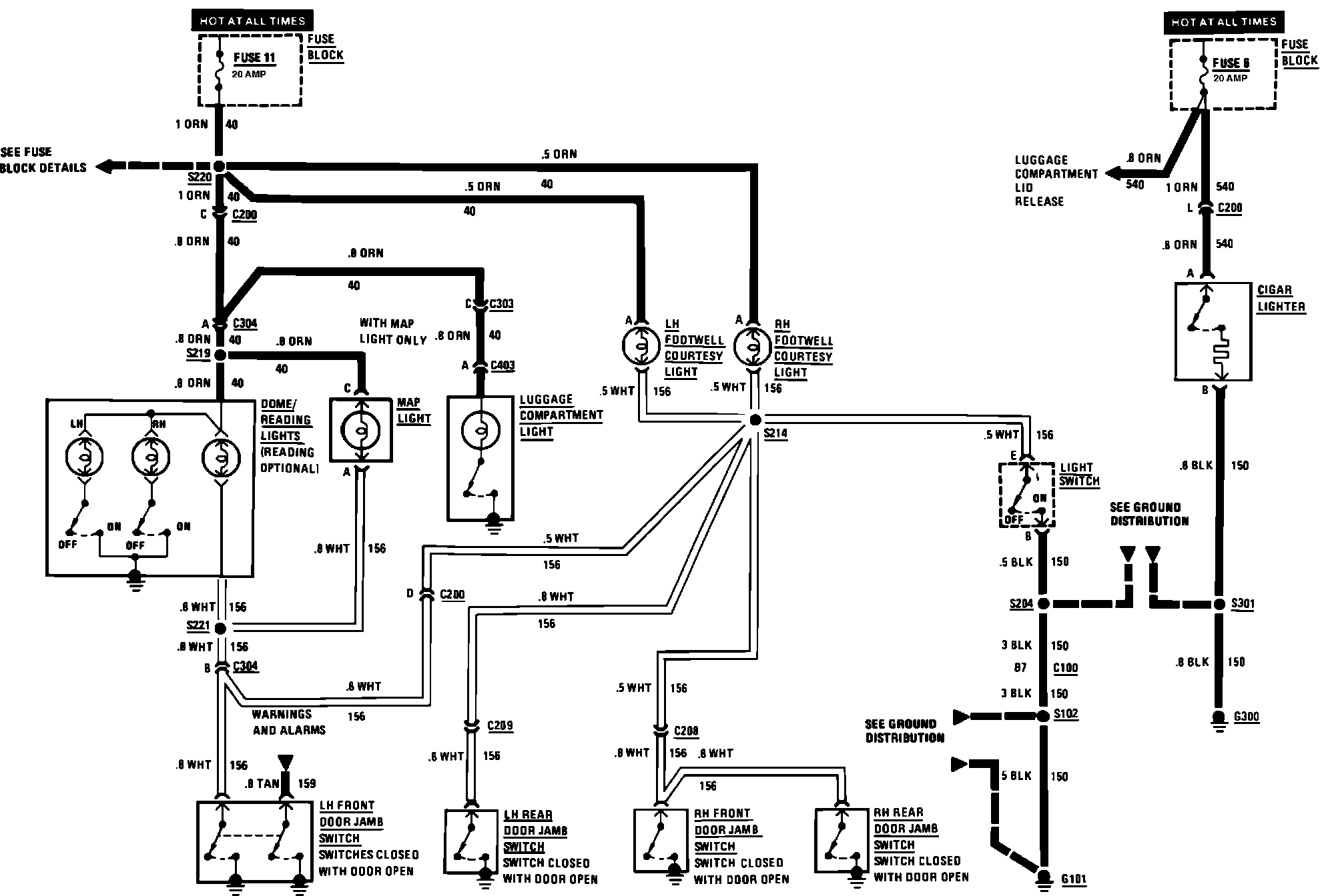 Interior Lights: Footwell Courtesy/Dome/Reading/Cigar Lighter/Map: