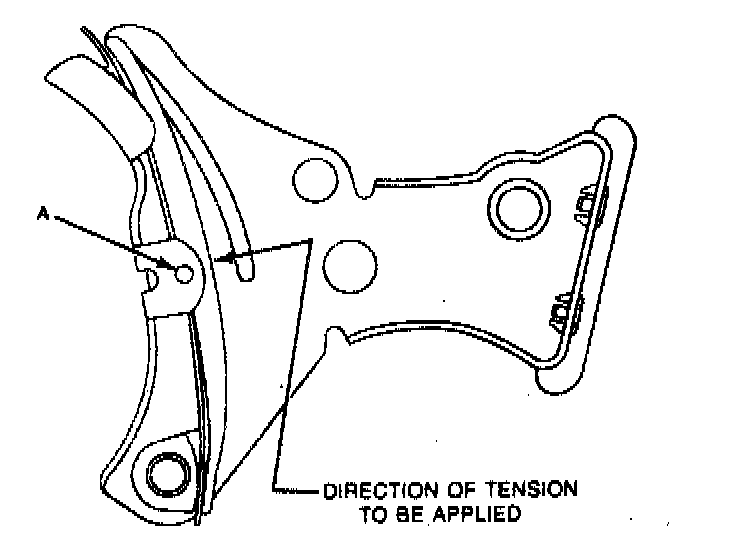 2. Compress tensioner spring, and using a suitable tool (cotter pin, nail) insert tool into hole.