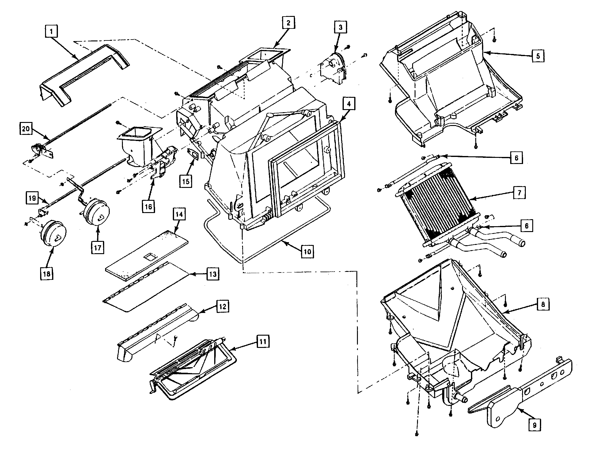 2. Heater core cover and screws. Tighten screws to 1.4Nm (12 lb in).