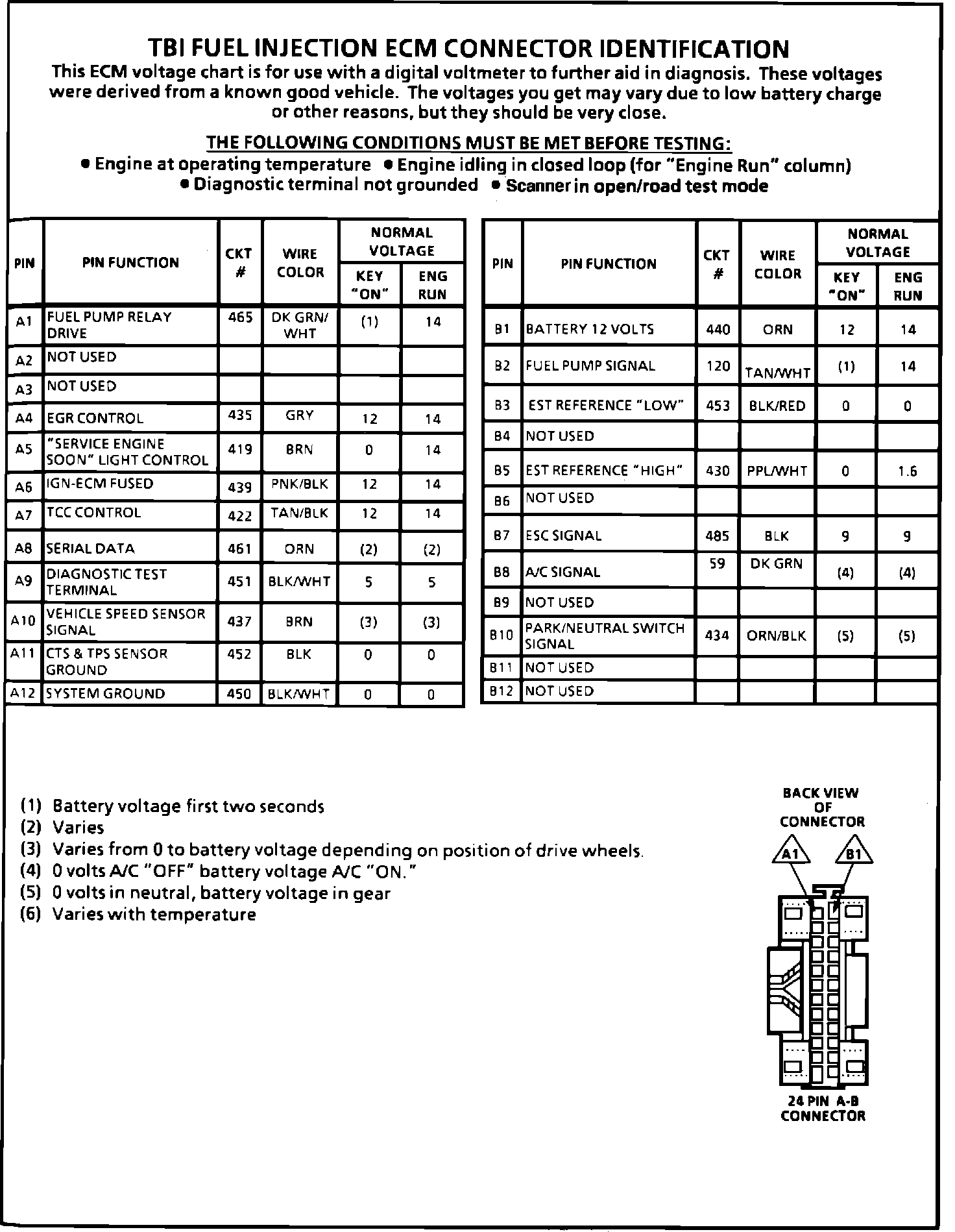 ECM Terminal Identification And Voltage Specification Part 1 Of 2: