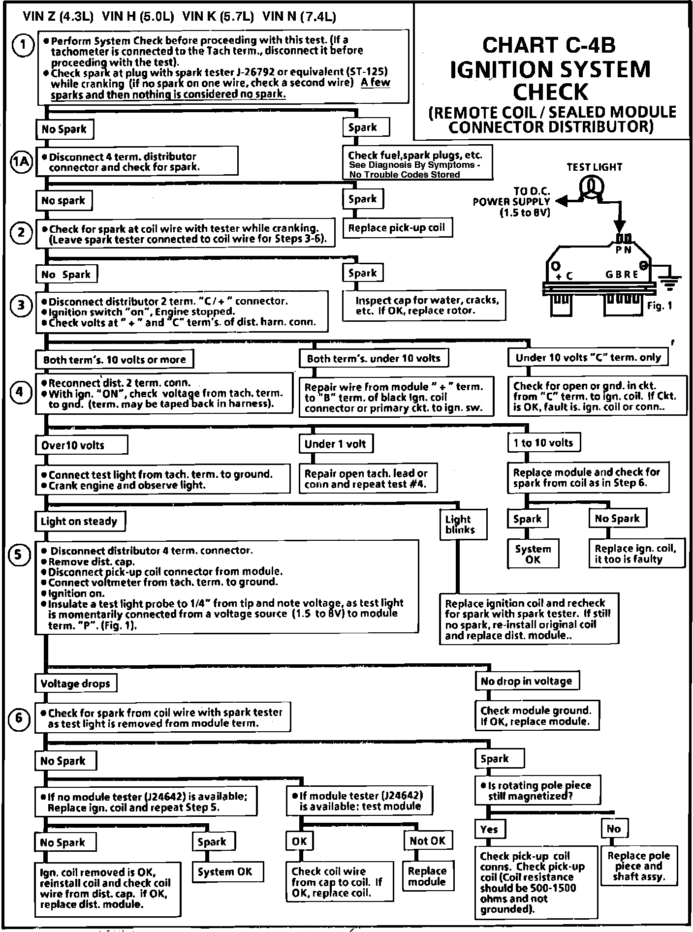 Ignition System Check (Remote Coil/Sealed Module Conn. Dist.):