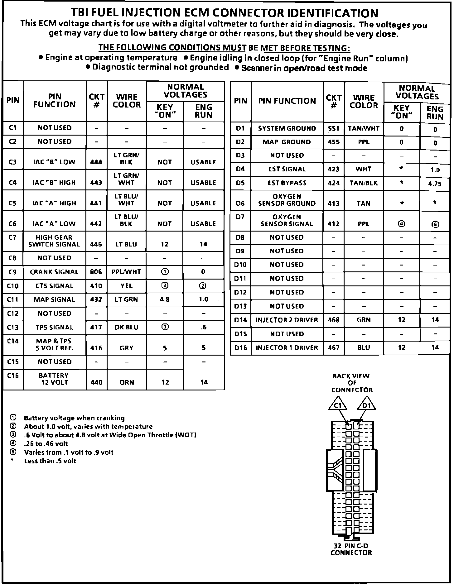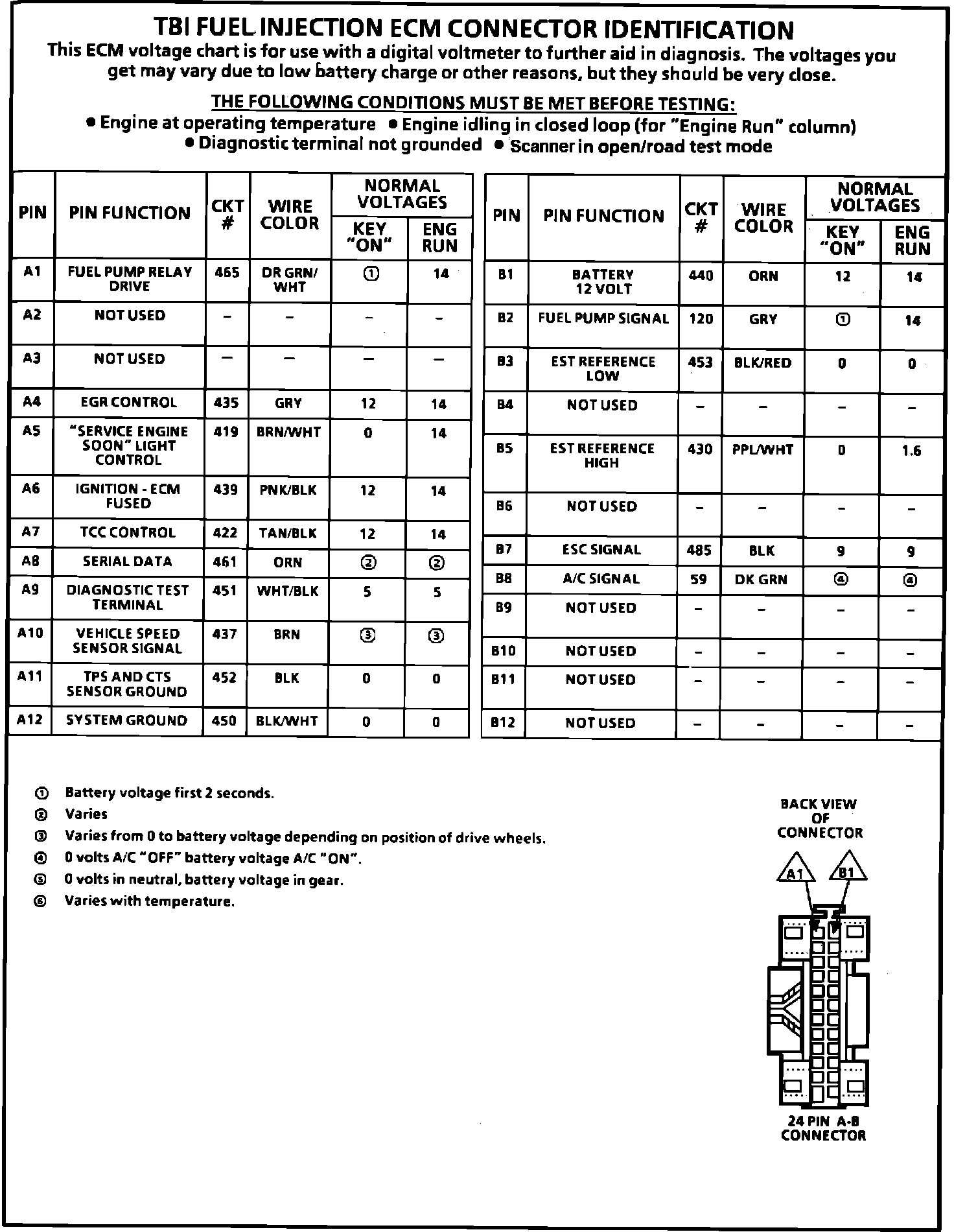 ECM Terminal Identification And Voltage Specification Part 1 Of 2: