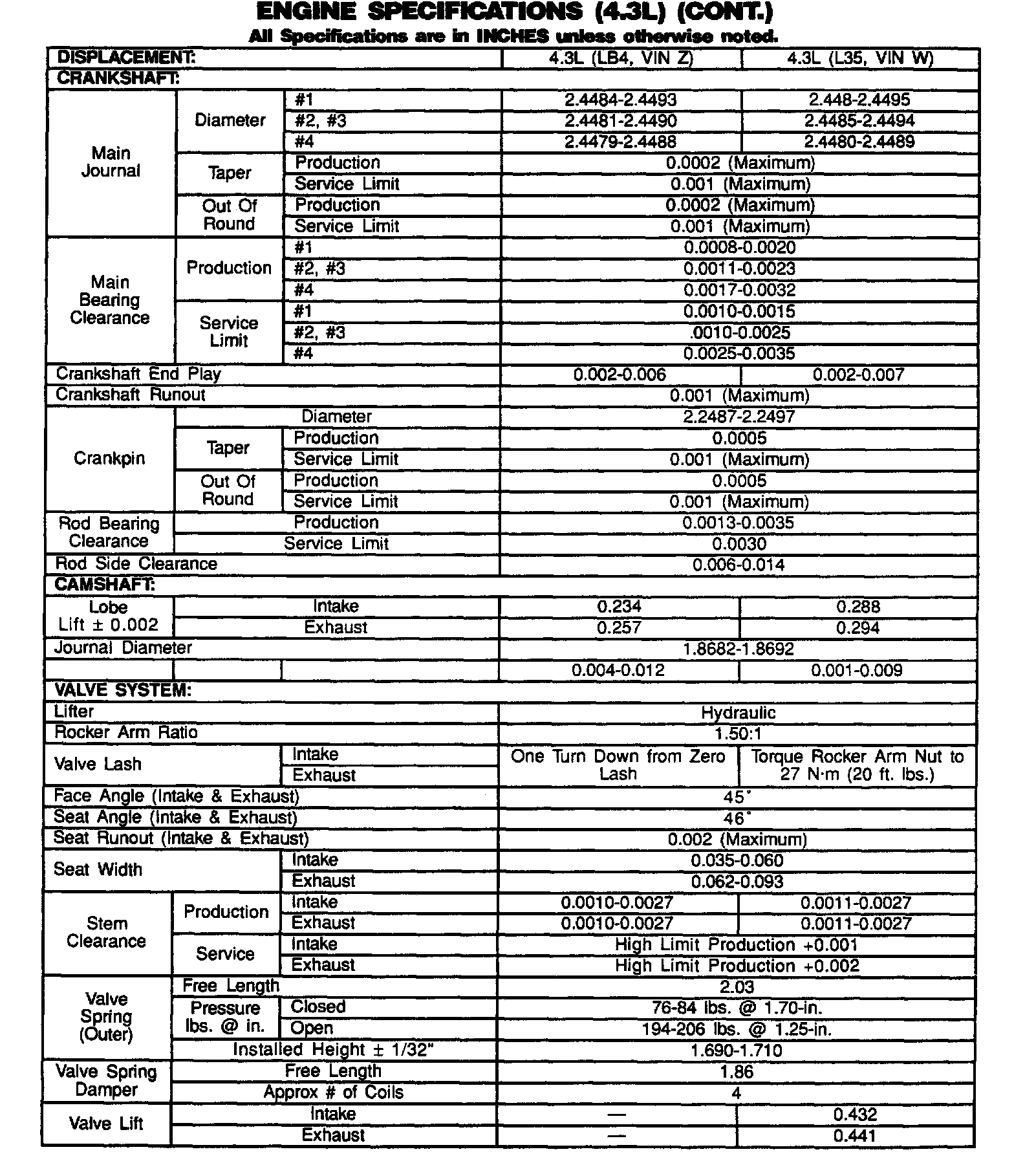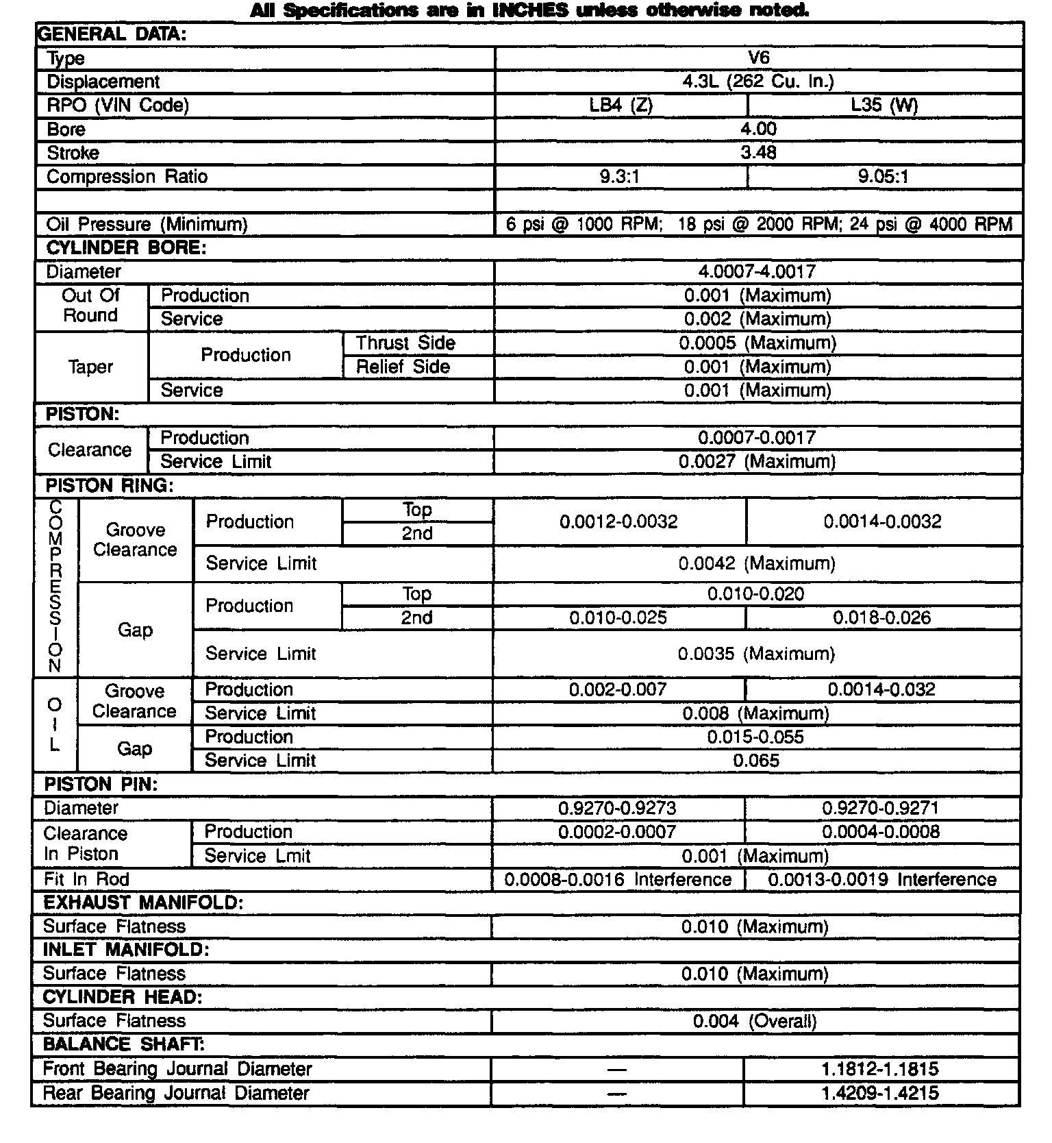 Engine Specifications: