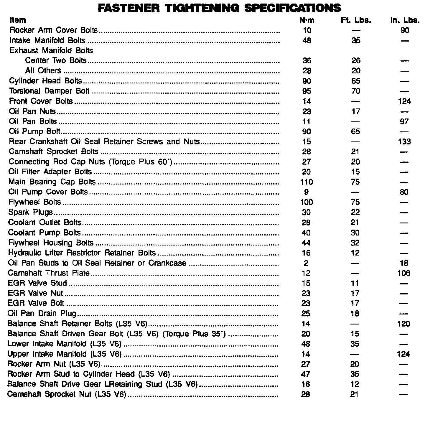 Torque Specifications: