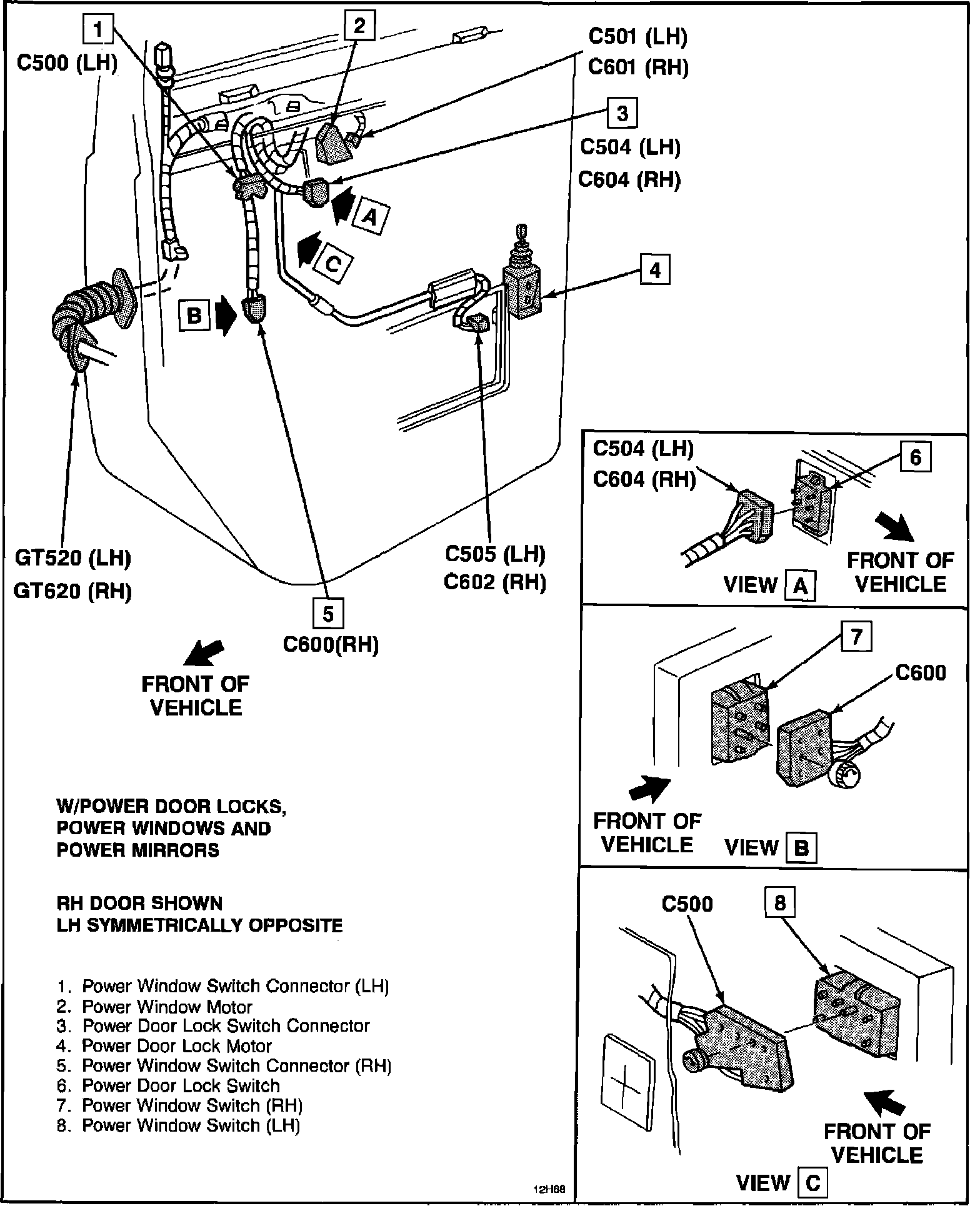 RH Door Wiring W/Power Door Locks, Power Windows And Power Mirrors: