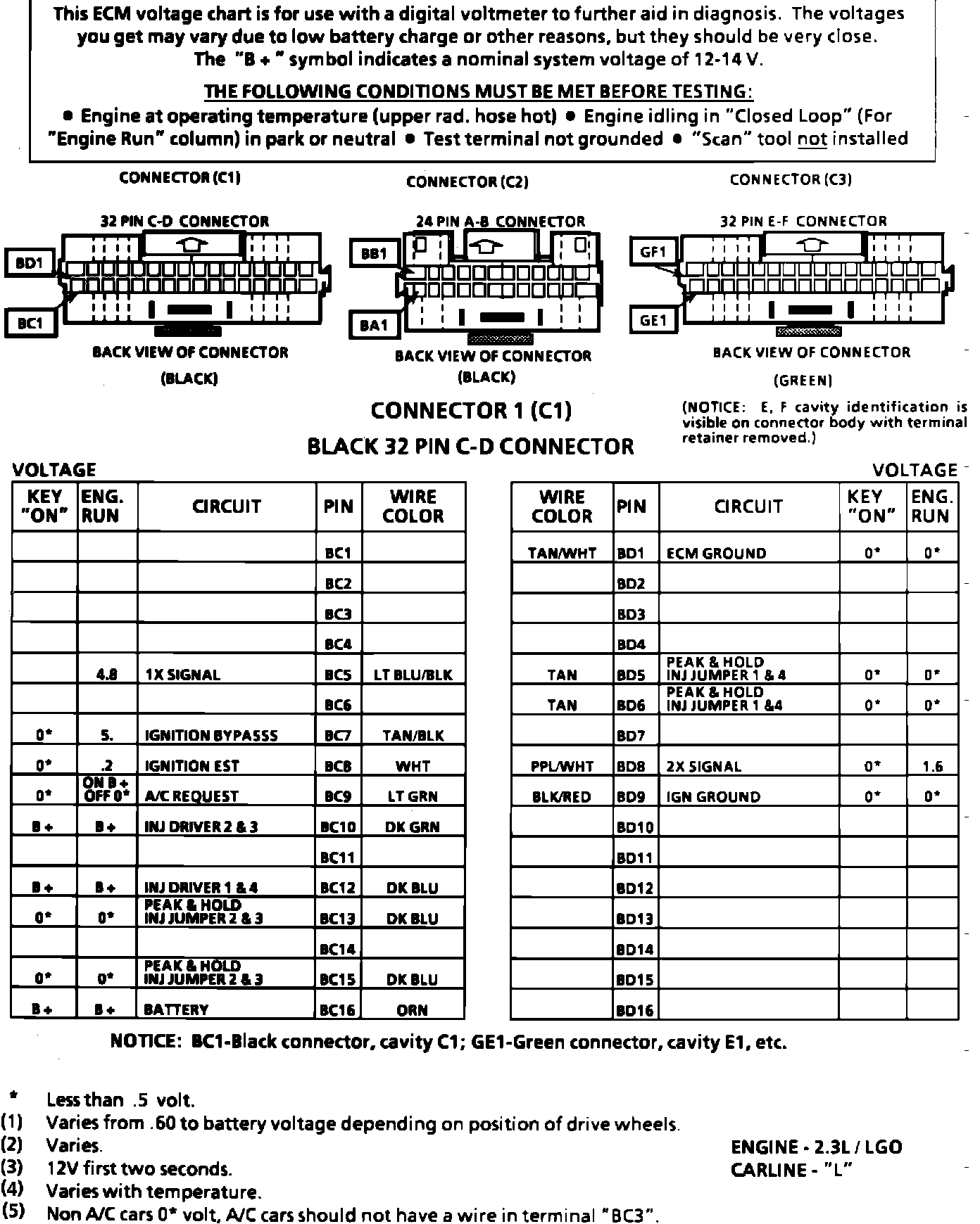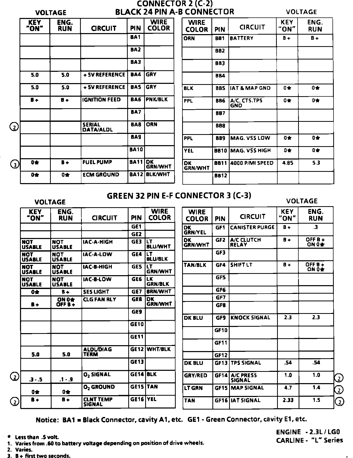 ECM PINOUT/Terminal I.D. Chart "L" Carline (2 Of 2):