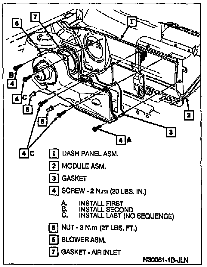 1. Blower motor and fan into position and mounting screws.
