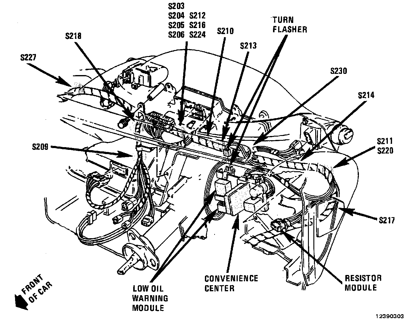 Behind the I/P, to the left of steering column