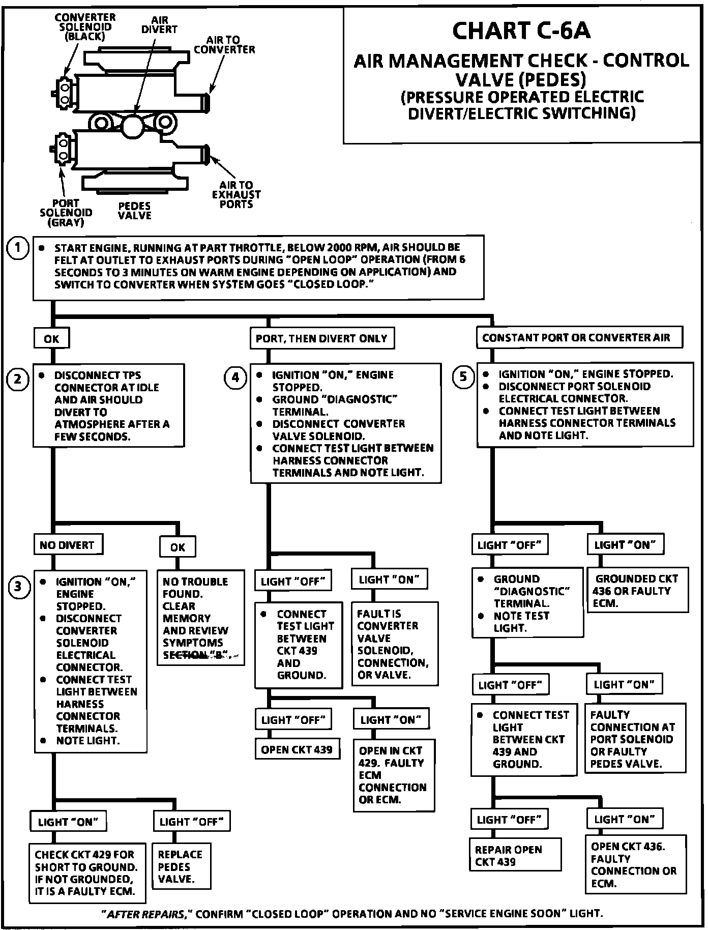 ^ Warm Mode Operation: The port (switch) solenoid is de-energized and the converter (divert) solenoid is energized. This closes the port valve and keeps the converter valve seated, and forces air to flow past the converter valve to the catalytic converter.