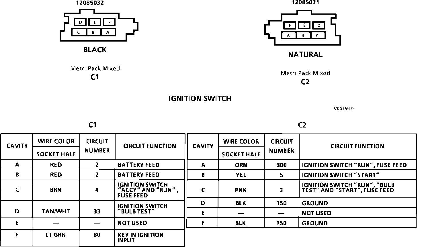 Ignition Switch Connector Face: