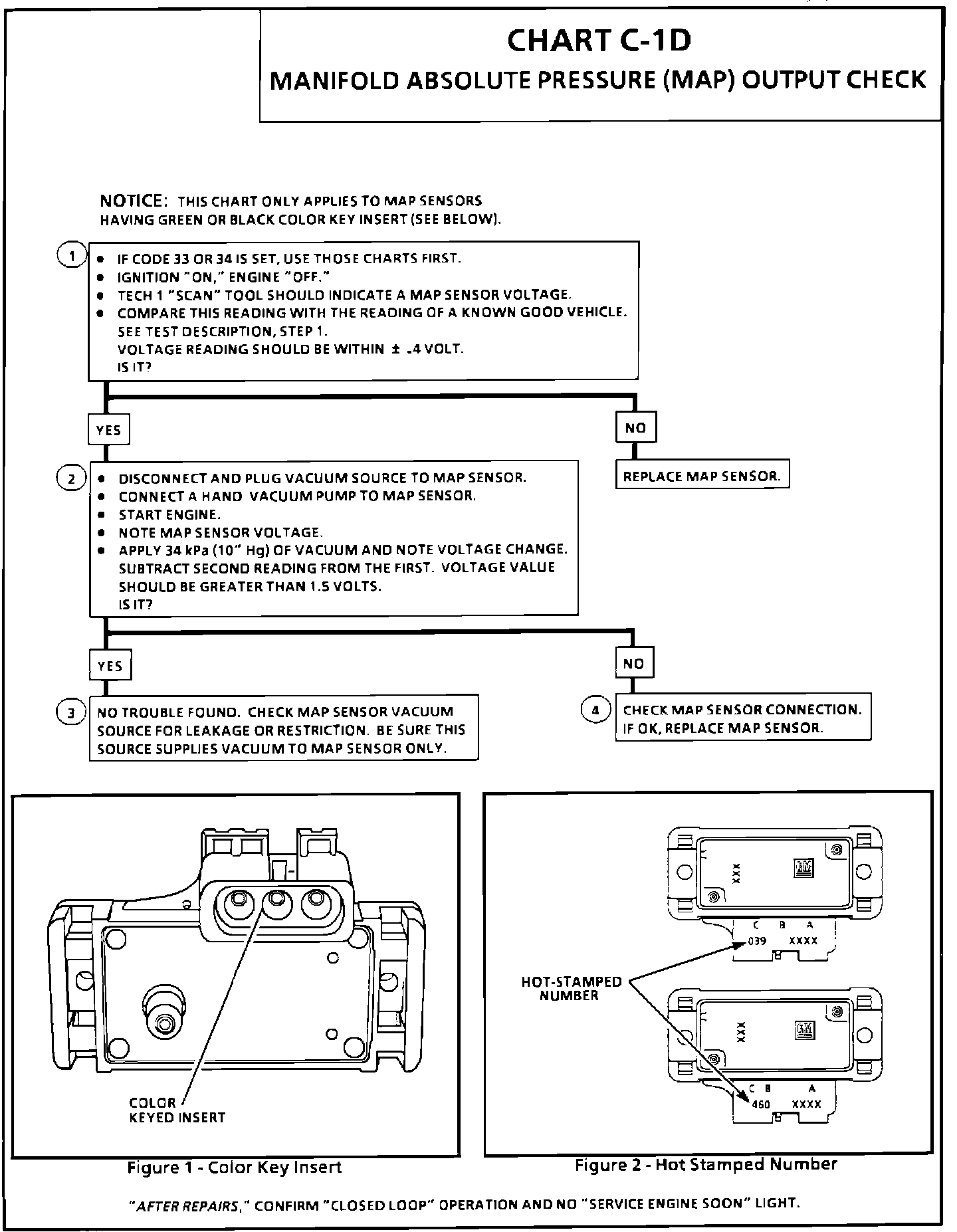 1. When comparing Scan readings to a known good vehicle, it is important to compare vehicles that use a MAP sensor having the same color insert or having the same "Hot Stamp" number. See figures on Chart.