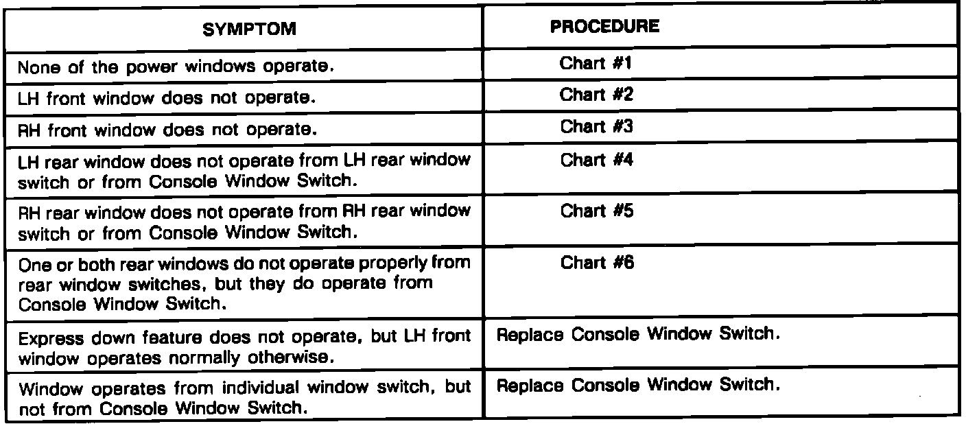 Power Windows Symptom Chart: