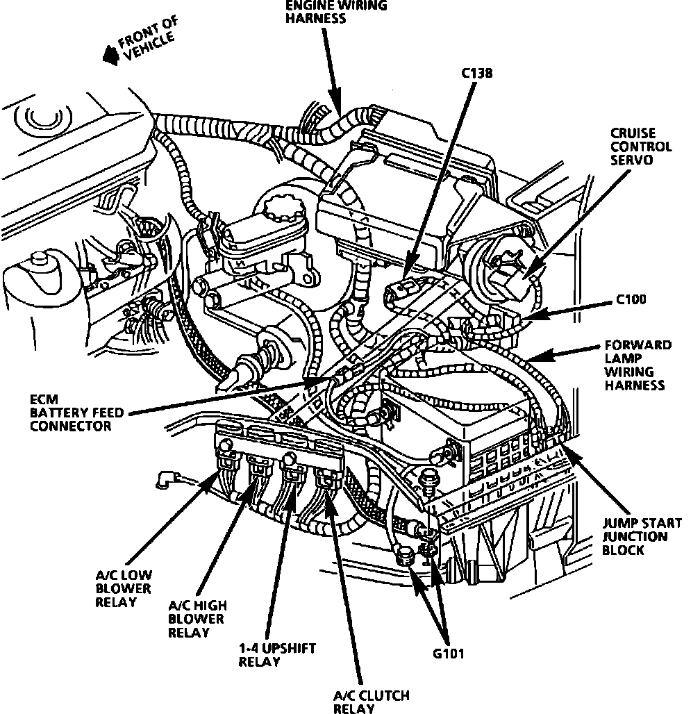 LH Rear Of Engine Compartment, Behind Battery