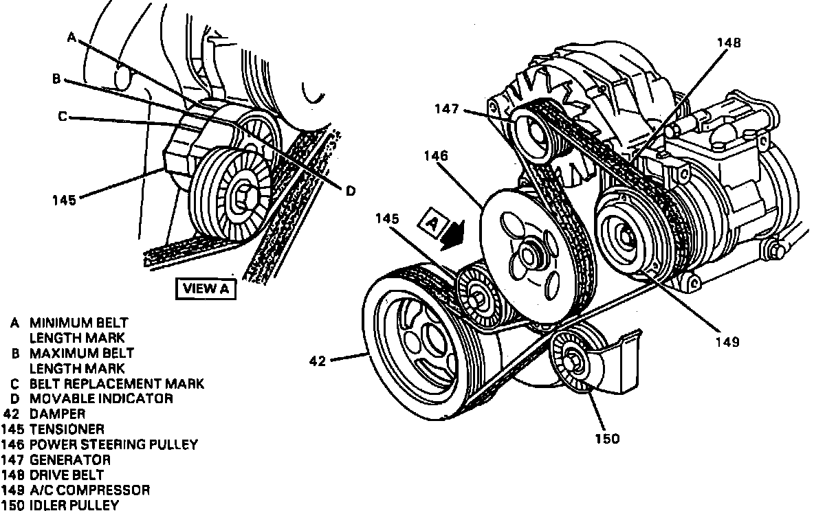 2. Reverse procedure to install. Check to ensure belt tension indicator marks are within limit lines on belt tensioner indicator.