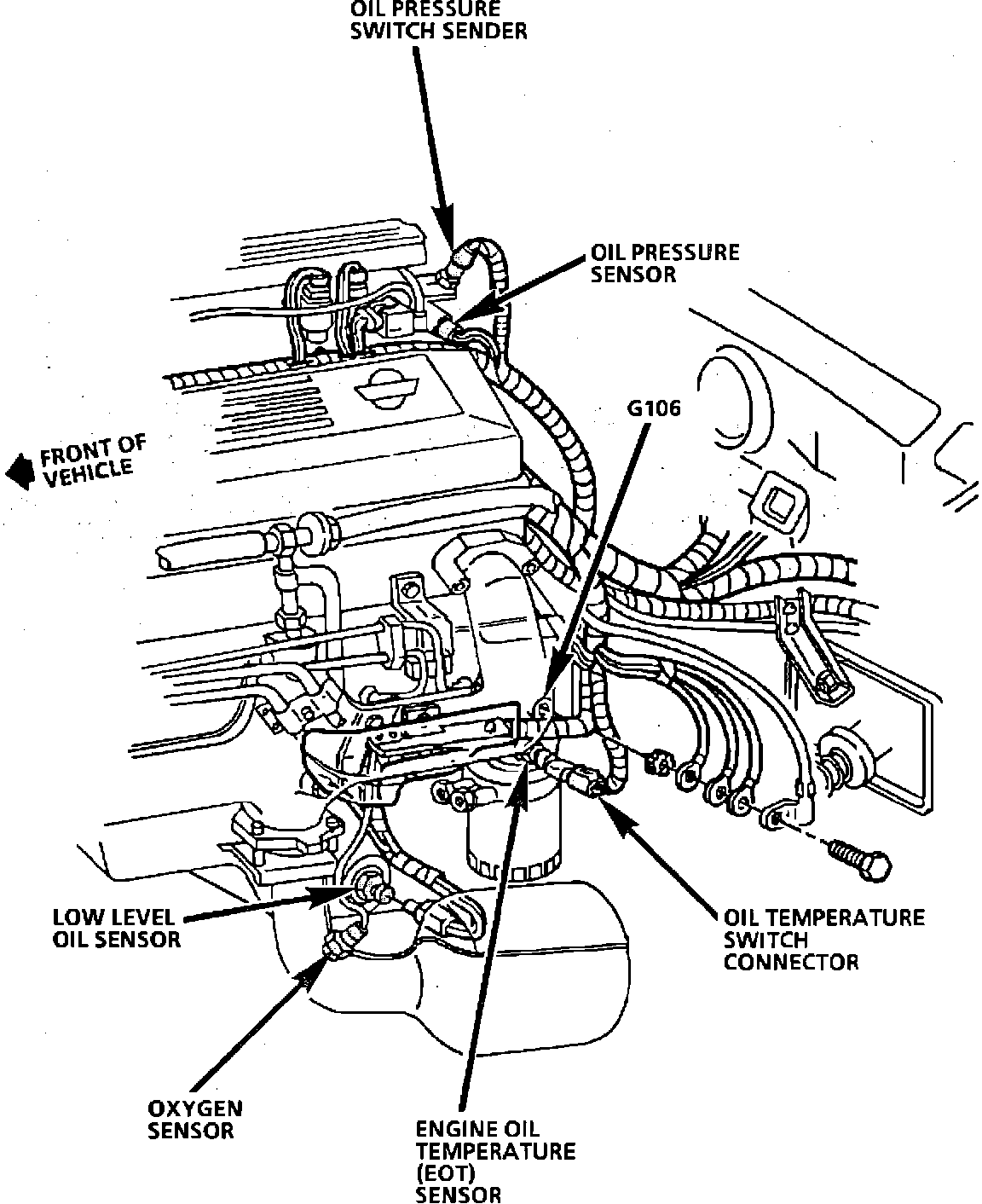 The left oxygen sensor is located in the left exhaust pipe as shown.
