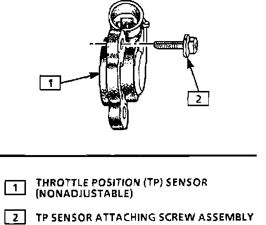 1. With throttle in closed position, install the throttle position sensor on the throttle body assembly, making sure TPS lever lines up with the TPS drive lever on the throttle shaft.