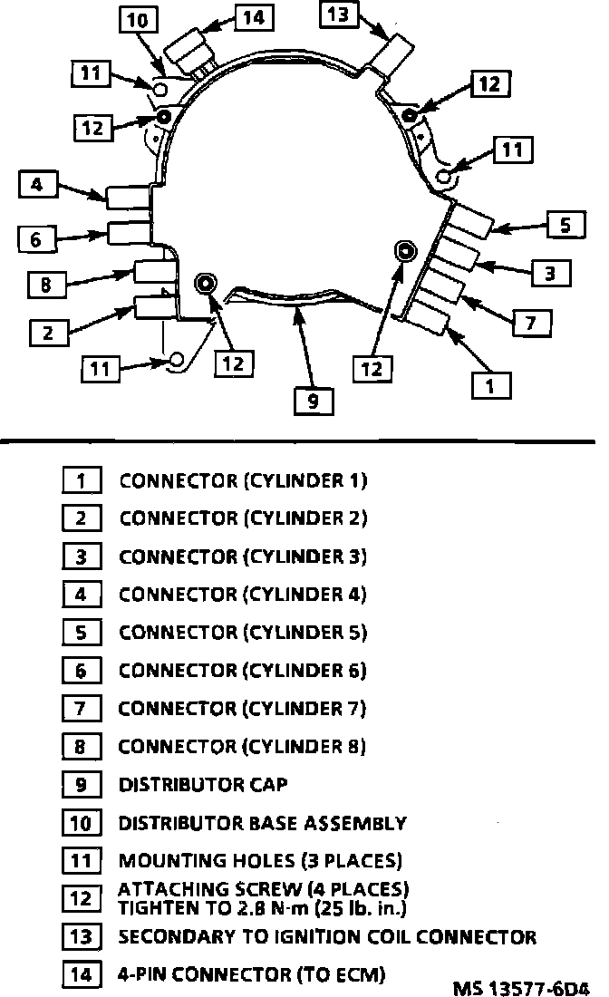 The distributor is mounted to the engine block behind the water pump, and driven directly by the camshaft.