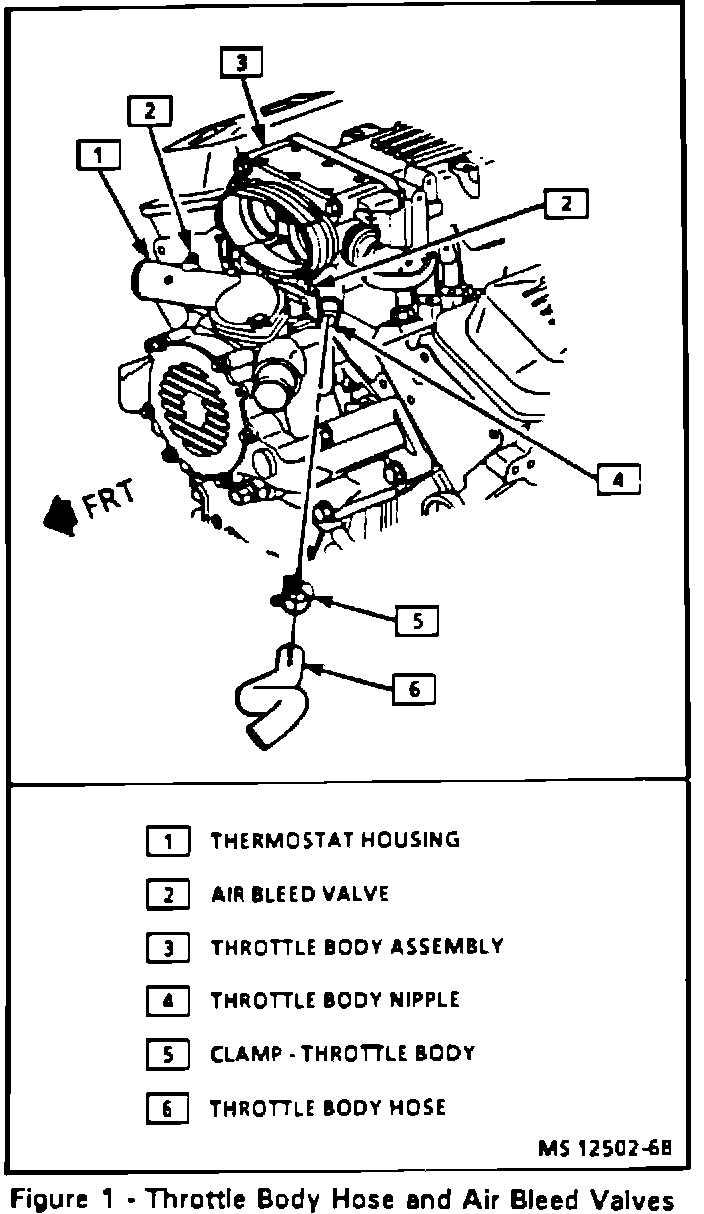 C. Open air bleed valves on thermostat housing and throttle body unit (refer to Figure 1).