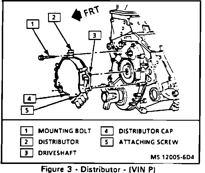 13. Remove three distributor mounting bolts. Pull distributor forward until drive shaft disengages from engine. Mark top surface of shaft to denote location during re-assembly (refer to Figure 3).