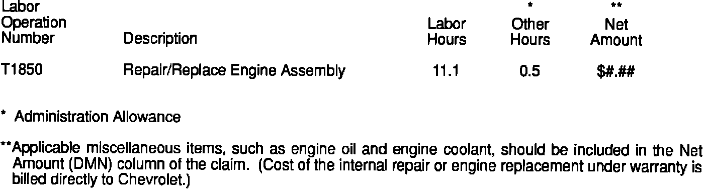 Any service items beyond those listed above require TAN authorization. Call the Chevrolet Technical Assistance Network - Miscellaneous Group at 1-800-227-3175.