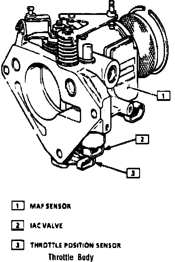 1. With the throttle valve in the normal closed idle position, install the throttle position sensor on the throttle body assembly, making sure the TPS pickup lever is located ABOVE the tang on the throttle actuator lever.