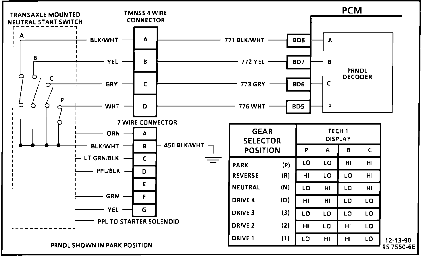 The gear select switch tells the PCM which gear the operator has selected (PRNDL), for control of the shift solenoids in the electronically controlled automatic transmission (ECAT).