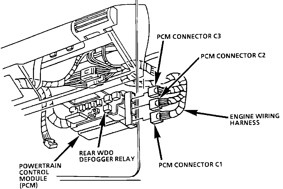 Service of the PCM should normally consist of either replacement of the PCM or a MEM-CAL change. If the diagnostic procedures call for the PCM to be replaced, the Memory-Calibration unit (MEM-CAL) and PCM should be checked first to see if they are the correct parts.PCM Location: