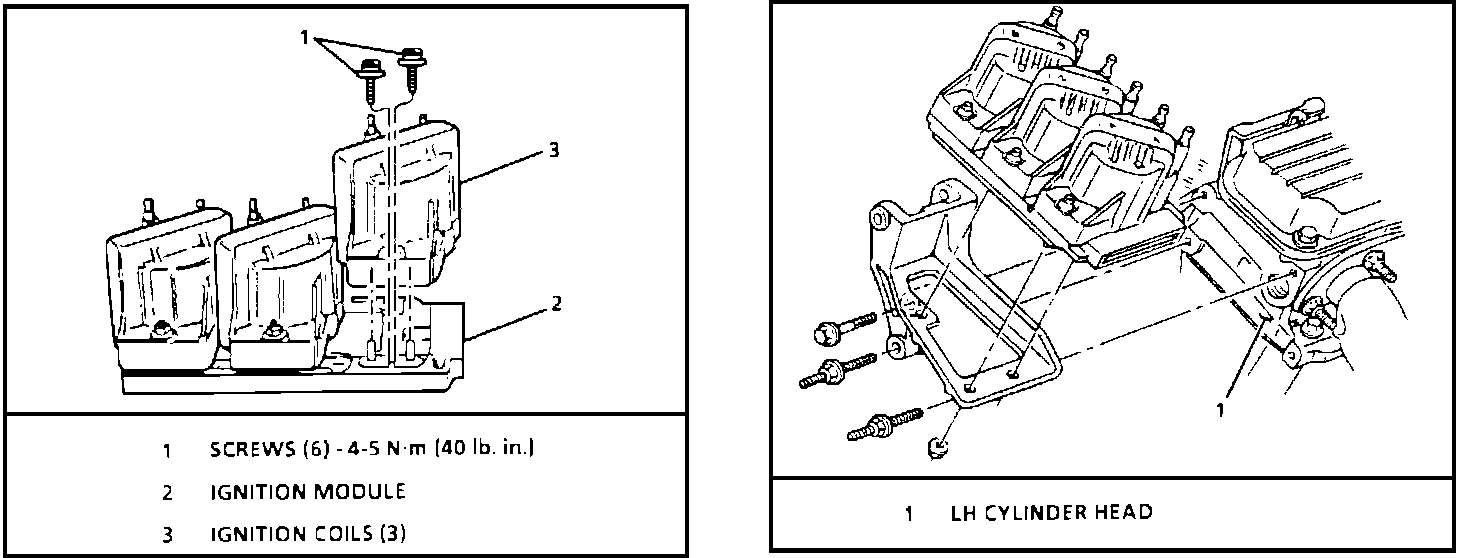 - Nuts and washers (3) securing ignition module assembly to bracket.