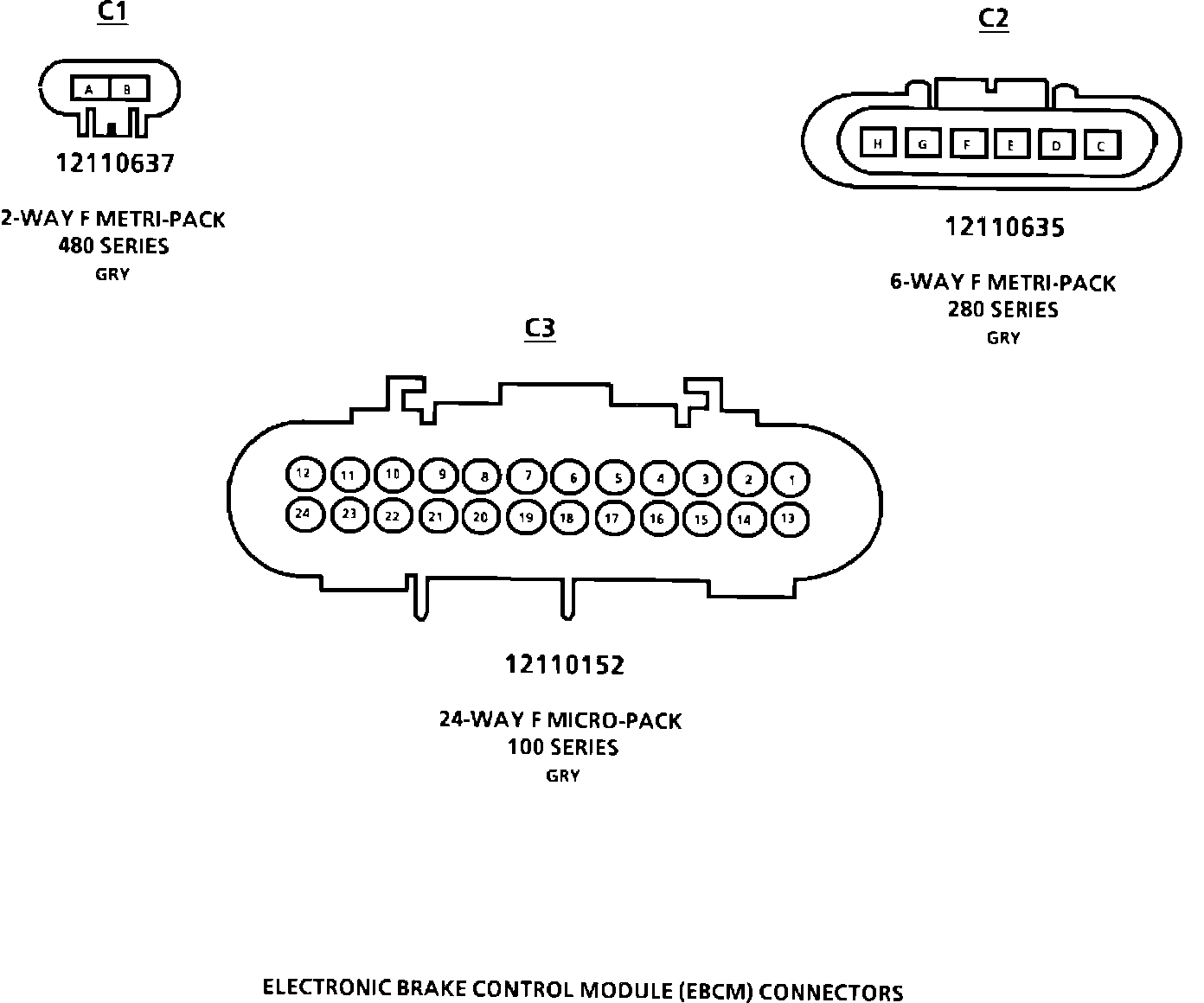 Electronic Brake Control Module (EBCM) Connector Faces: